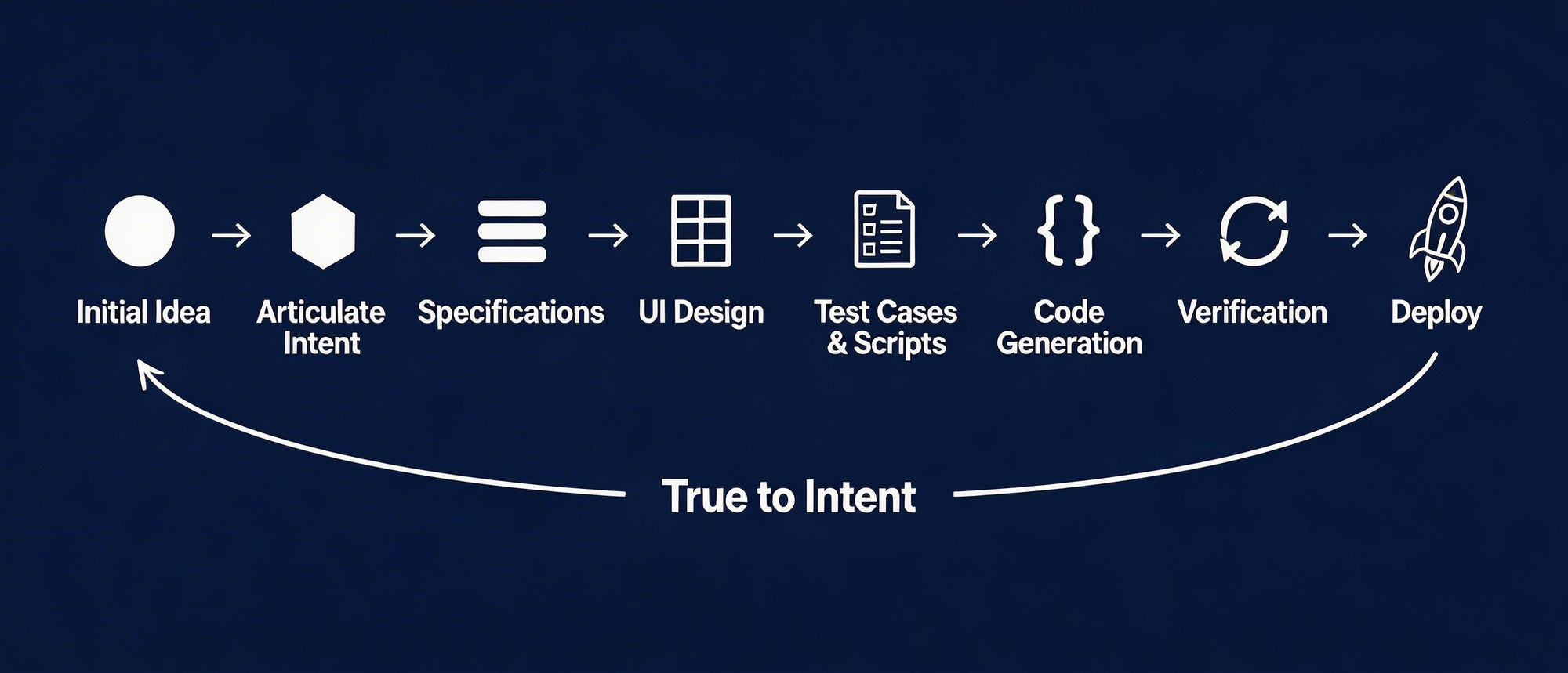 Systems should be derived from intent, not assembled by hand. AI generates artifacts from specifications with precision.